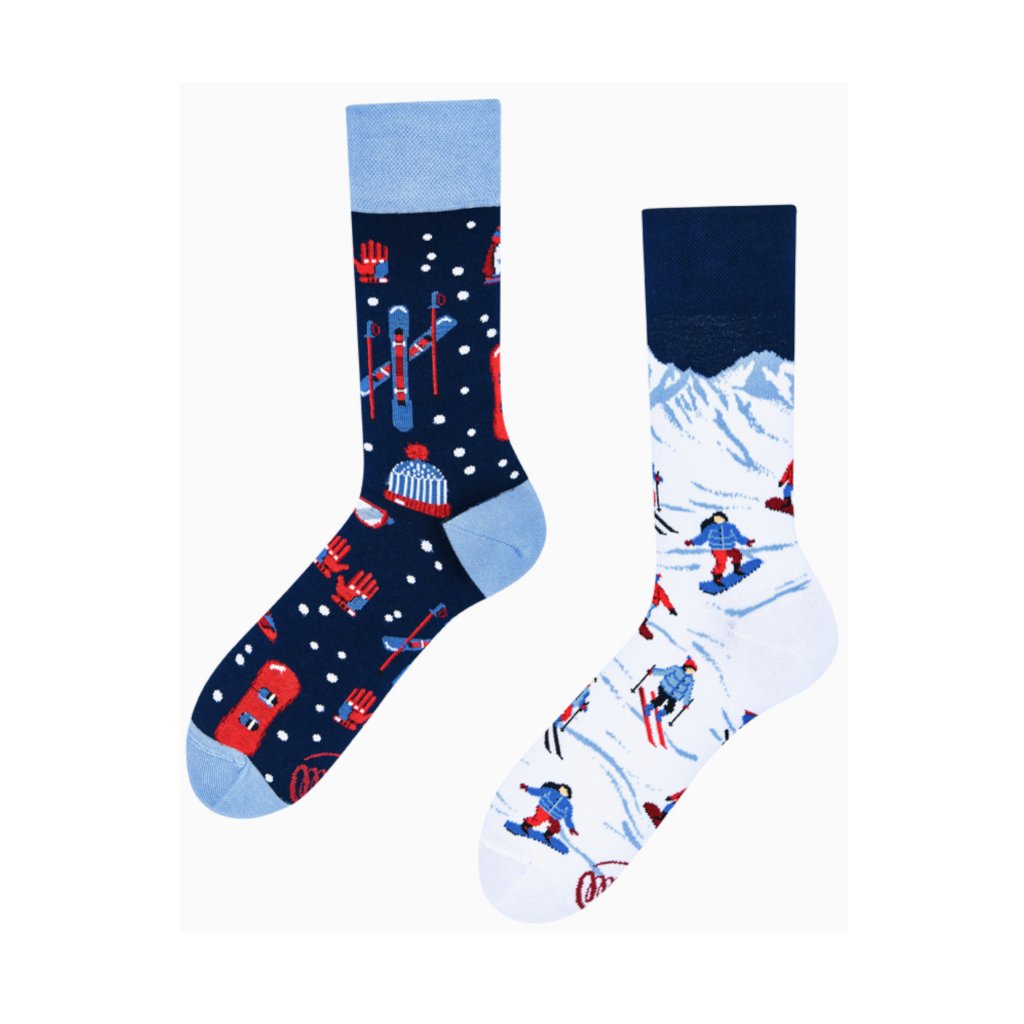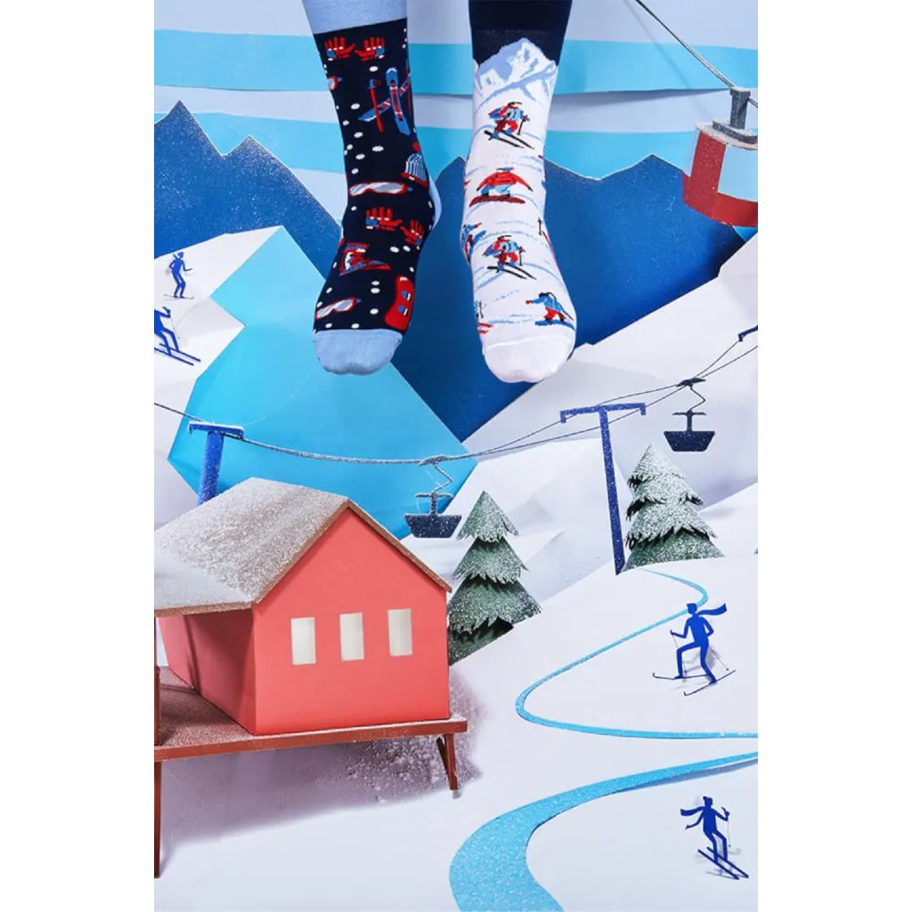 Veselé ponožky Many Mornings Alpské lyžování potěší všechny fandy zimních sportů. A nosit je můžete i v Krkonoších. Materiál tvoří především bavlna, která je příjemná na dotyk a vyznačuje se vysokou schopností absorbovat vlhkost, čímž pomáhá udržet vaše nohy svěží.