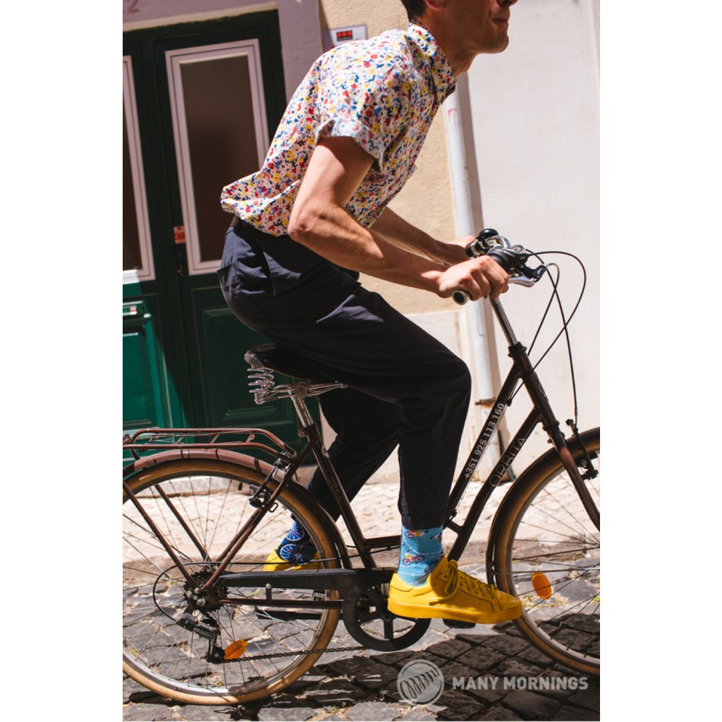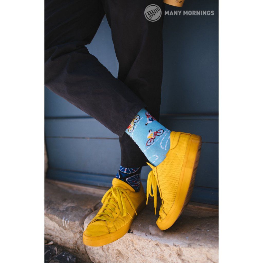 Veselé ponožky Many Mornings Bicykly udělají radost všem nadšencům do kol a cyklistiky. Vyrobeny jsou převážně z bavlny, která je hebká na dotek a díky schopnosti absorbovat vlhkost udržuje vaše chodidla svěží.
