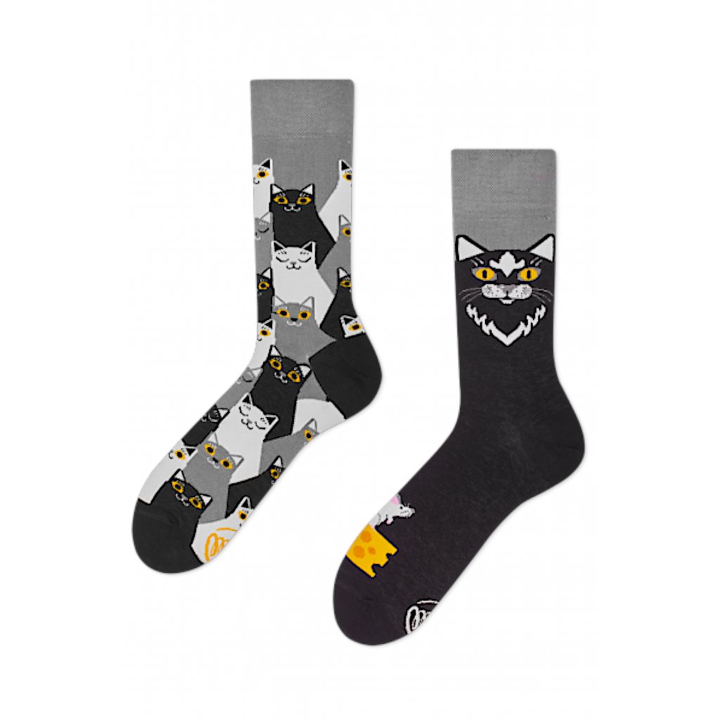 Veselé ponožky Many Mornings Černé kočky vás zaujmou svou tajemnou atmosférou. Vyrobeny jsou převážně z bavlny, která je hebká na dotek a díky schopnosti absorbovat vlhkost udržuje vaše chodidla svěží.
